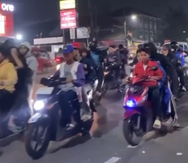 Kejadian yang terekam dalam sebuah video berdurasi 1 menit 29 detik itu menunjukkan para remaja membawa senjata tajam berupa celurit panjang dan petasan, memicu keresahan di kalangan warga yang masih beraktivitas di lokasi tersebut.