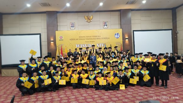 potretkita.com, Kota Bekasi – STT Bina Tunggal kembali menegaskan posisinya sebagai kampus teknik yang berorientasi industri melalui pelaksanaan Wisuda XIV Program Sarjana (S1) di Hotel Merapi Merbabu, Rabu (3/12/2025).