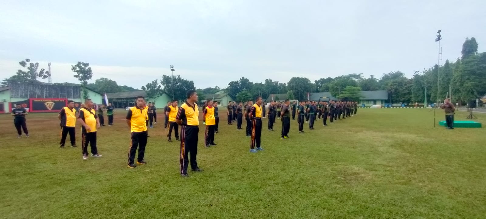 Ratusan peserta yang terdiri dari personel Batalyon Armed-7/105 GS, Polsek Bantargebang melakukan senam dilanjutkan dengan jalan santai di seputar markas Yonarmed – 7/105 GS.