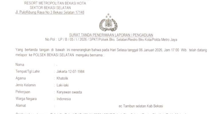 Oknum ASN aktif dilaporkan polisi Janji SHM Tak Kunjung Terwujud, Oknum ASN Aktif Resmi Dilaporkan ke Polisi headline news|07/01/202607/01/2026oleh Potret Kita potretkita.com, Kota Bekasi – Dugaan tindak pidana penipuan dan atau penggelapan yang